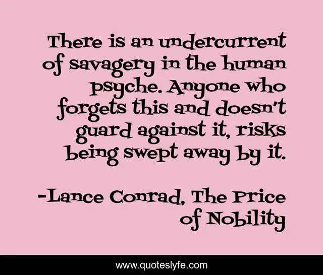 "Lance Conrad, The Price of Nobility Quotes." Quoteslyfe.com, 2025. Sun. 07 Dec. 2025. <https://www.quoteslyfe.com/quote/There-is-an-undercurrent-of-savagery-in-258971>.