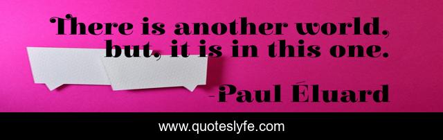 This page presents the quote "There is another world, but, it is in this one.". Author of this quote is Paul Éluard. This quote is about surrealism, another-world, reality,.