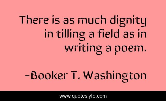This page presents the quote "There is as much dignity in tilling a field as in writing a poem.". Author of this quote is Booker T. Washington. .