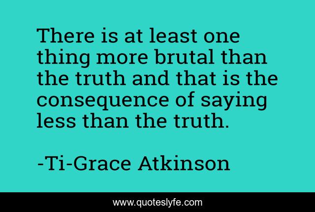 This page presents the quote "There is at least one thing more brutal than the truth and that is the consequence of saying less than the truth.". Author of this quote is Ti-Grace Atkinson. .