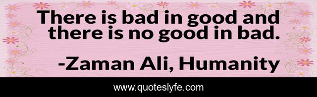 This page presents the quote "There is bad in good and there is no good in bad.". Author of this quote is Zaman Ali, Humanity. This quote is about bad, good,.