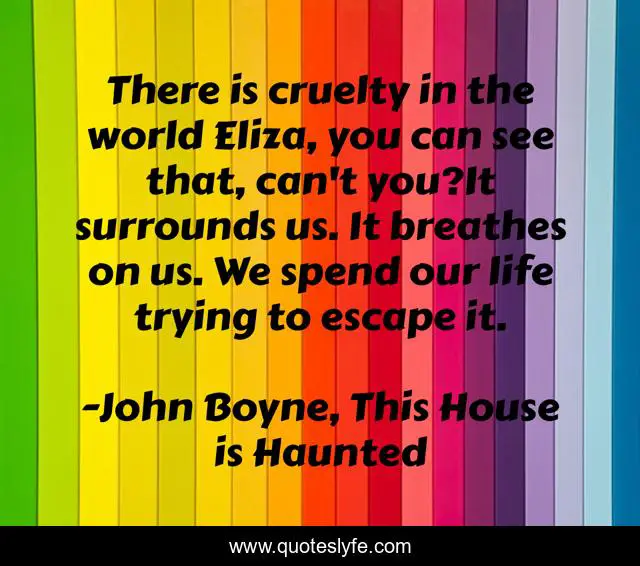 "John Boyne, This House is Haunted Quotes." Quoteslyfe.com, 2025. Fri. 05 Dec. 2025. <https://www.quoteslyfe.com/quote/There-is-cruelty-in-the-world-Eliza-200713>.