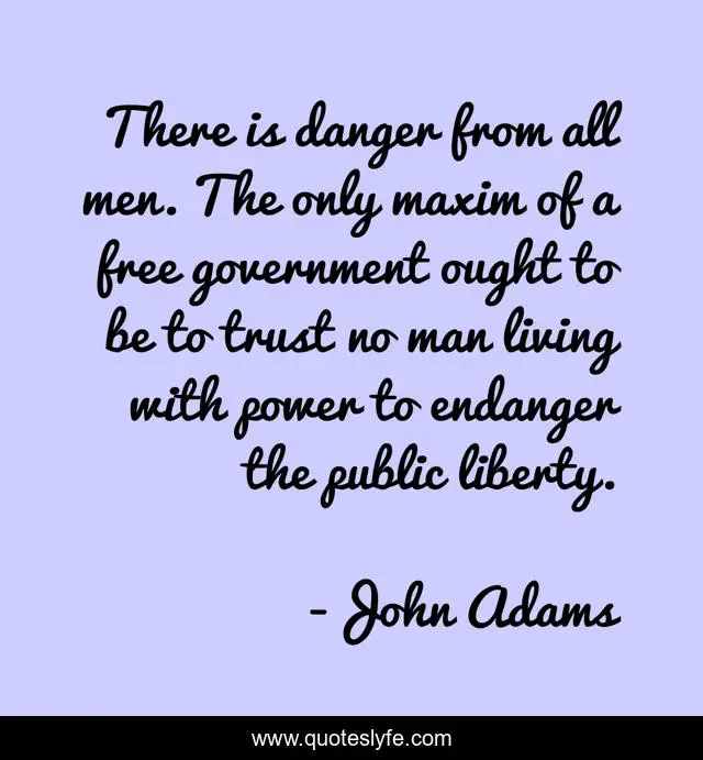 This page presents the quote "There is danger from all men. The only maxim of a free government ought to be to trust no man living with power to endanger the public liberty.". Author of this quote is John Adams. This quote is about freedom, trust, government,.