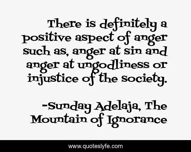 This page presents the quote "There is definitely a positive aspect of anger such as, anger at sin and anger at ungodliness or injustice of the society.". Author of this quote is Sunday Adelaja, The Mountain of Ignorance. This quote is about mountain, life, darkness, power, danger, god, positivity, people, ignorance,.