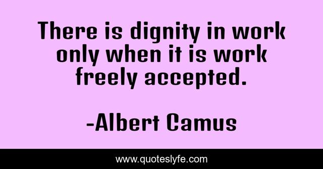 This page presents the quote "There is dignity in work only when it is work freely accepted.". Author of this quote is Albert Camus. .
