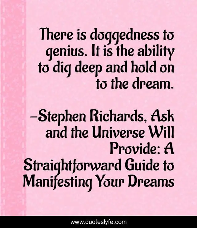 "Stephen Richards, Ask and the Universe Will Provide: A Straightforward Guide to Manifesting Your Dreams Quotes." Quoteslyfe.com, 2025. Sat. 06 Dec. 2025. <https://www.quoteslyfe.com/quote/There-is-doggedness-to-genius-It-is-44782>.