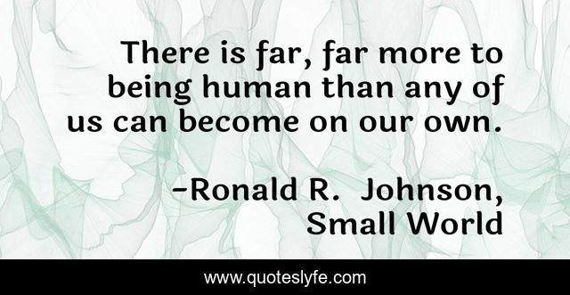 This page presents the quote "There is far, far more to being human than any of us can become on our own.". Author of this quote is Ronald R. Johnson, Small World. This quote is about enthusiasm, social-media, education, inspirational,.