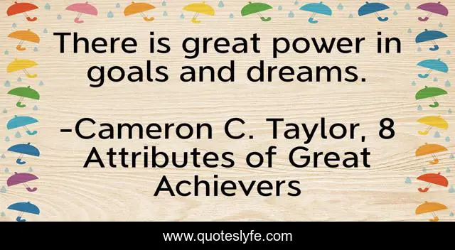 "Cameron C. Taylor, 8 Attributes of Great Achievers Quotes." Quoteslyfe.com, 2025. Sat. 06 Dec. 2025. <https://www.quoteslyfe.com/quote/There-is-great-power-in-goals-and-141248>.