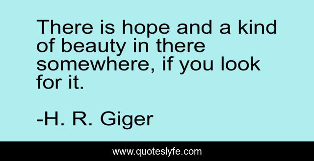 This page presents the quote "There is hope and a kind of beauty in there somewhere, if you look for it.". Author of this quote is H. R. Giger. This quote is about look, beauty,.