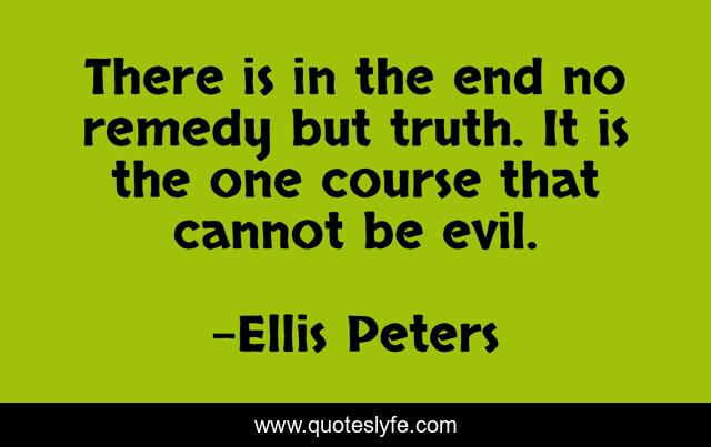 This page presents the quote "There is in the end no remedy but truth. It is the one course that cannot be evil.". Author of this quote is Ellis Peters. .