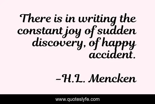 This page presents the quote "There is in writing the constant joy of sudden discovery, of happy accident.". Author of this quote is H.L. Mencken. .