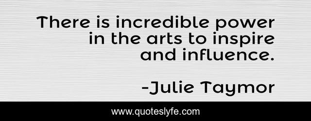 This page presents the quote "There is incredible power in the arts to inspire and influence.". Author of this quote is Julie Taymor. This quote is about arts, influence, inspire,.