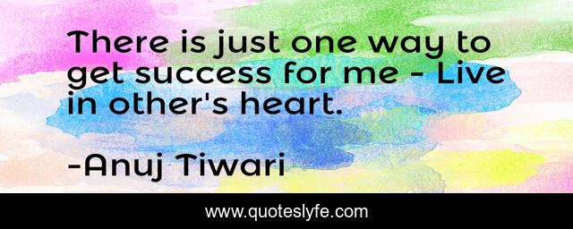 This page presents the quote "There is just one way to get success for me - Live in other's heart.". Author of this quote is Anuj Tiwari. This quote is about rupa-publications, anujtiwari, book, anujtiwariquotes,.