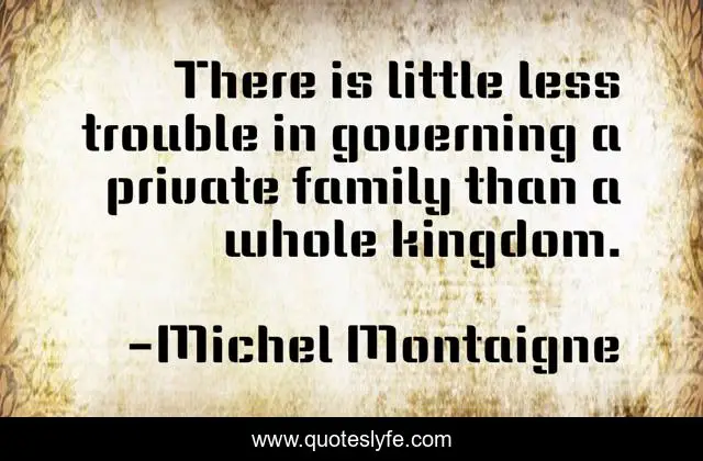 This page presents the quote "There is little less trouble in governing a private family than a whole kingdom.". Author of this quote is Michel Montaigne. .