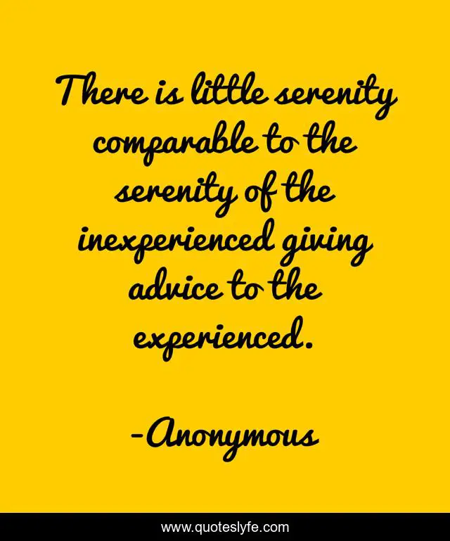 This page presents the quote "There is little serenity comparable to the serenity of the inexperienced giving advice to the experienced.". Author of this quote is Anonymous. .