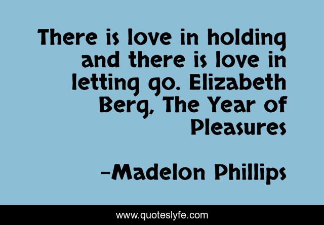 This page presents the quote "There is love in holding and there is love in letting go. Elizabeth Berg, The Year of Pleasures". Author of this quote is Madelon Phillips. This quote is about elizabeth-berg, quotes,.