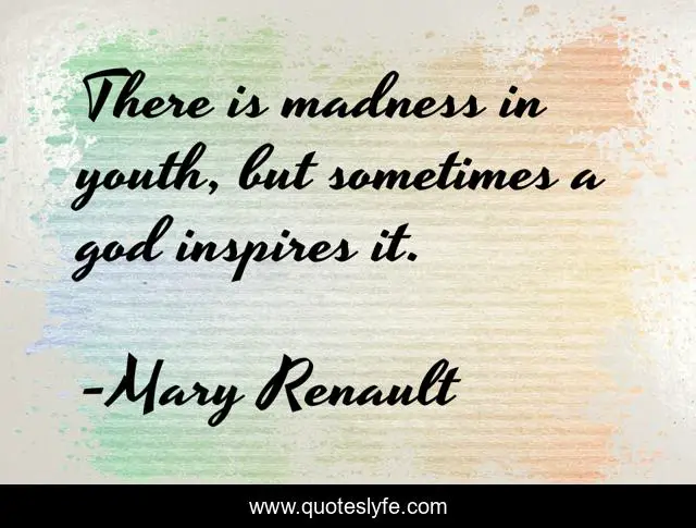 This page presents the quote "There is madness in youth, but sometimes a god inspires it.". Author of this quote is Mary Renault. This quote is about youth, madness, youthful,.