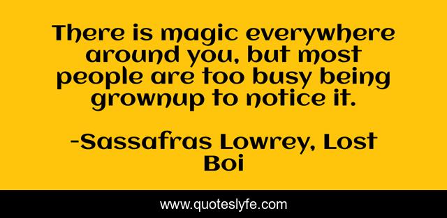 "Sassafras Lowrey, Lost Boi Quotes." Quoteslyfe.com, 2025. Sat. 06 Dec. 2025. <https://www.quoteslyfe.com/quote/There-is-magic-everywhere-around-you-but-133788>.