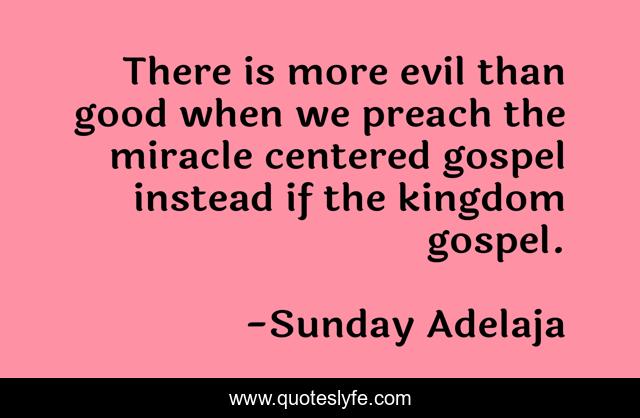 This page presents the quote "There is more evil than good when we preach the miracle centered gospel instead if the kingdom gospel.". Author of this quote is Sunday Adelaja. This quote is about good-and-evil, evil,.