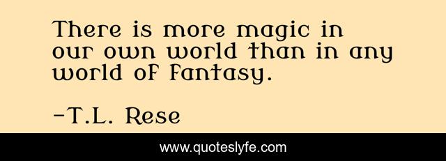 This page presents the quote "There is more magic in our own world than in any world of fantasy.". Author of this quote is T.L. Rese. This quote is about fantasy, magic, worlds,.