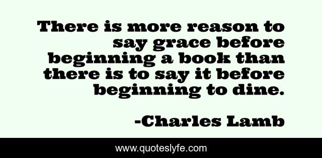 This page presents the quote "There is more reason to say grace before beginning a book than there is to say it before beginning to dine.". Author of this quote is Charles Lamb. This quote is about gratitude, joy, reading,.