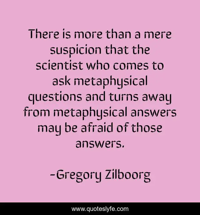 This page presents the quote "There is more than a mere suspicion that the scientist who comes to ask metaphysical questions and turns away from metaphysical answers may be afraid of those answers.". Author of this quote is Gregory Zilboorg. This quote is about science, technology,.