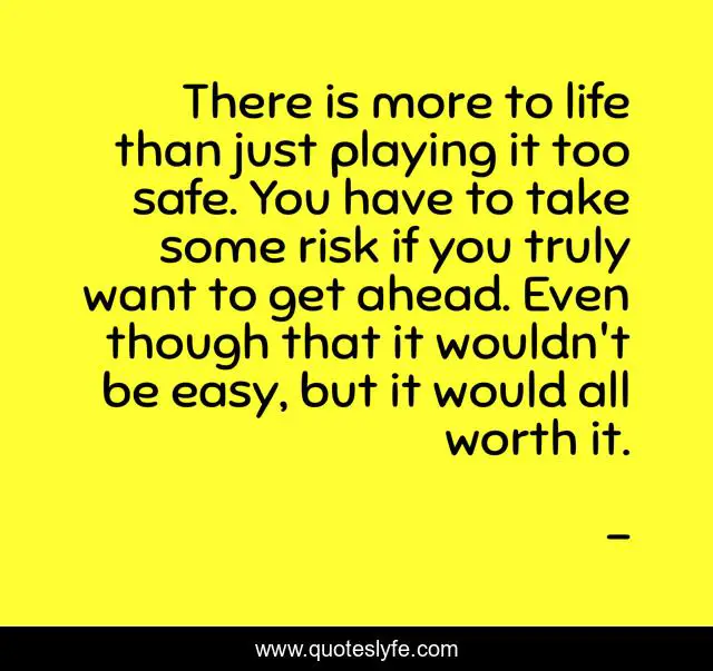 There is more to life than just playing it too safe. You have to take some risk if you truly want to get ahead. Even though that it wouldn't be easy, but it would all worth it.