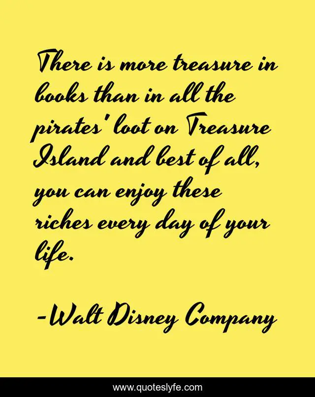 This page presents the quote "There is more treasure in books than in all the pirates' loot on Treasure Island and best of all, you can enjoy these riches every day of your life.". Author of this quote is Walt Disney Company. .