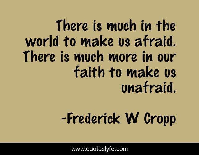 This page presents the quote "There is much in the world to make us afraid. There is much more in our faith to make us unafraid.". Author of this quote is Frederick W Cropp. This quote is about success, happiness,.