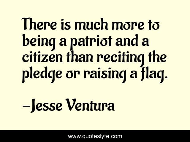 This page presents the quote "There is much more to being a patriot and a citizen than reciting the pledge or raising a flag.". Author of this quote is Jesse Ventura. This quote is about flag, patriot, citizen,.