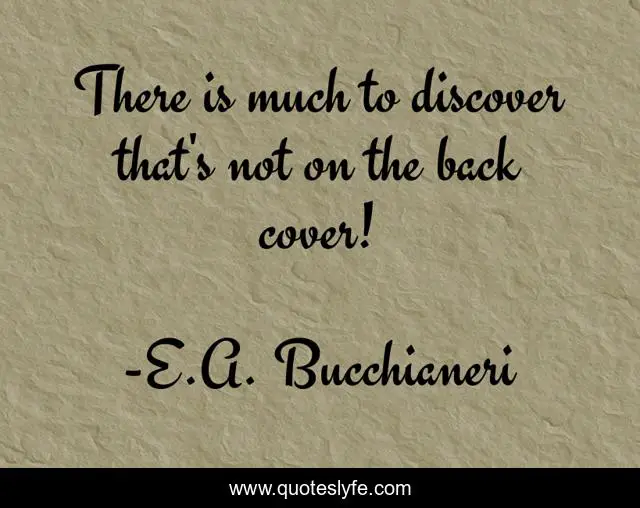 This page presents the quote "There is much to discover that's not on the back cover!". Author of this quote is E.A. Bucchianeri. This quote is about book-cover, back-cover, literature, humor, i-love-books, humour, funny, reading-books, book-covers,.