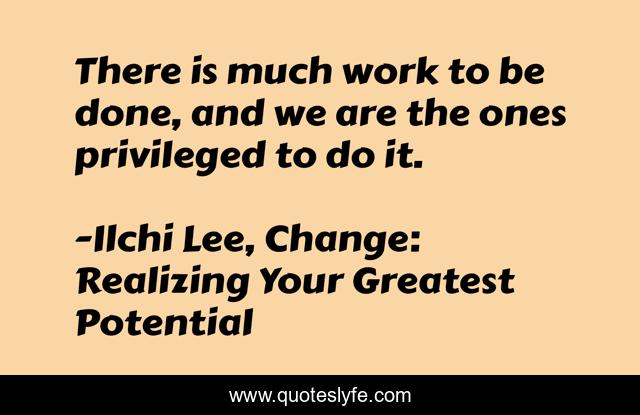 "Ilchi Lee, Change: Realizing Your Greatest Potential Quotes." Quoteslyfe.com, 2025. Mon. 08 Dec. 2025. <https://www.quoteslyfe.com/quote/There-is-much-work-to-be-done-253389>.