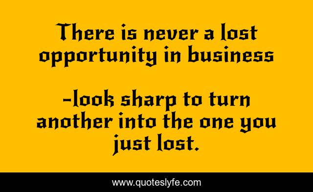 This page presents the quote "There is never a lost opportunity in business". Author of this quote is look sharp to turn another into the one you just lost.. .