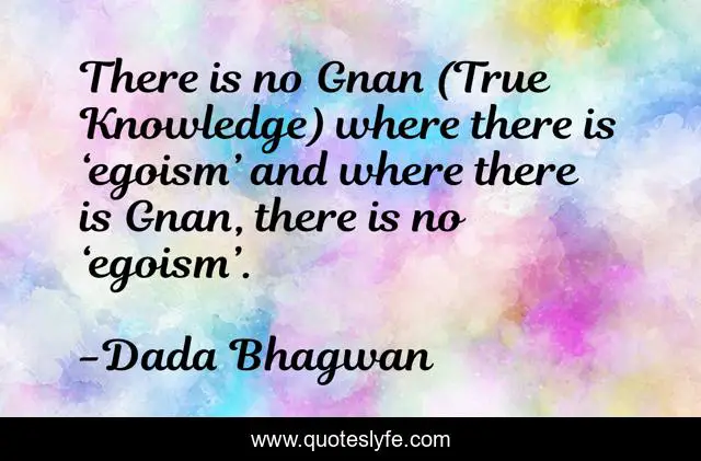 This page presents the quote "There is no Gnan (True Knowledge) where there is ‘egoism’ and where there is Gnan, there is no ‘egoism’.". Author of this quote is Dada Bhagwan. This quote is about spiritual, ego, gnan, egoism, gyan,.