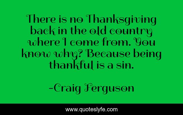 This page presents the quote "There is no Thanksgiving back in the old country where I come from. You know why? Because being thankful is a sin.". Author of this quote is Craig Ferguson. This quote is about sin, thanksgiving,.