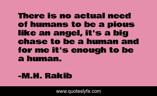 This page presents the quote "There is no actual need of humans to be a pious like an angel, it's a big chase to be a human and for me it's enough to be a human.". Author of this quote is M.H. Rakib. .