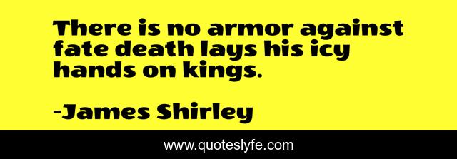 This page presents the quote "There is no armor against fate death lays his icy hands on kings.". Author of this quote is James Shirley. .