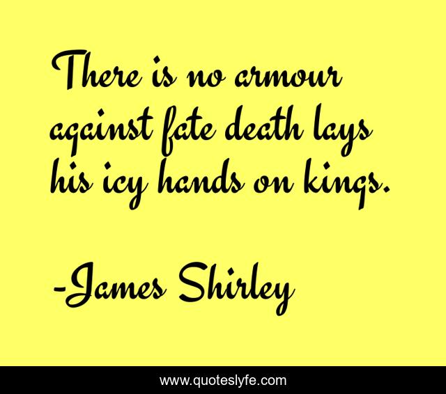 This page presents the quote "There is no armour against fate death lays his icy hands on kings.". Author of this quote is James Shirley. .