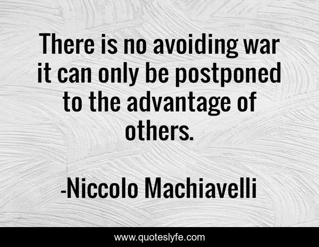 "Niccolo Machiavelli Quotes." Quoteslyfe.com, 2025. Fri. 05 Dec. 2025. <https://www.quoteslyfe.com/quote/There-is-no-avoiding-war-it-can-285514>.