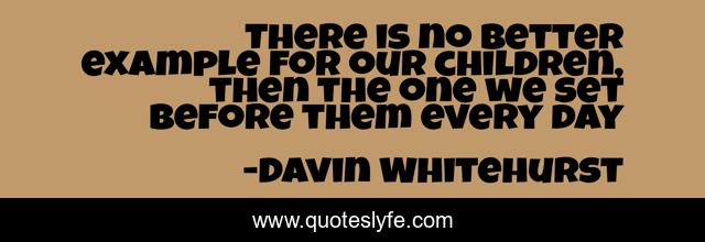 This page presents the quote "There is no better example for our children, then the one we set before them every day". Author of this quote is Davin Whitehurst. This quote is about parenting, parenting-children,.