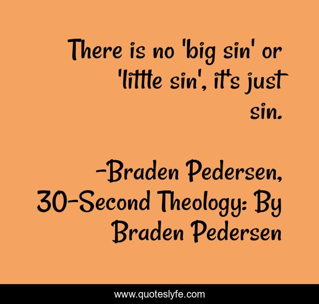 This page presents the quote "There is no 'big sin' or 'little sin', it's just sin.". Author of this quote is Braden Pedersen, 30-Second Theology: By Braden Pedersen. This quote is about braden-pedersen, life, christian,.