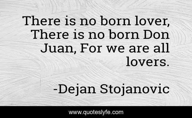 This page presents the quote "There is no born lover, There is no born Don Juan, For we are all lovers.". Author of this quote is Dejan Stojanovic. This quote is about lovers, dejan-stojanovic, poetry, don-juan, wisdom, quotes, literature, born-lover, lover,.