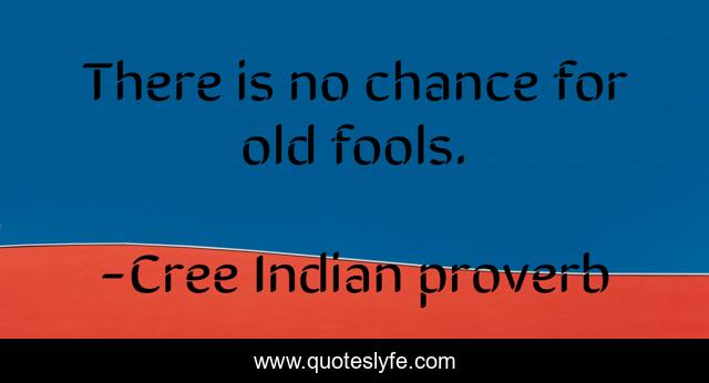This page presents the quote "There is no chance for old fools.". Author of this quote is Cree Indian proverb. This quote is about fools, foolishness,.