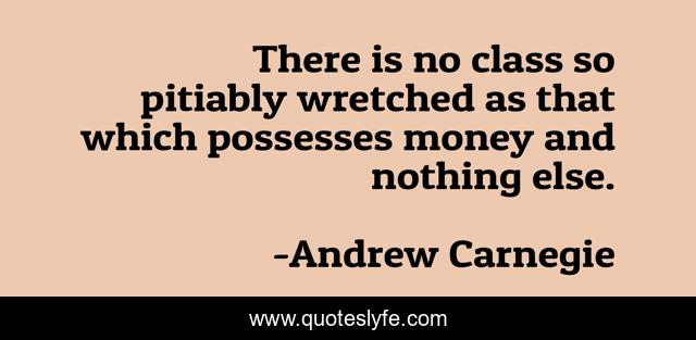 This page presents the quote "There is no class so pitiably wretched as that which possesses money and nothing else.". Author of this quote is Andrew Carnegie. This quote is about nothing, class, which,.