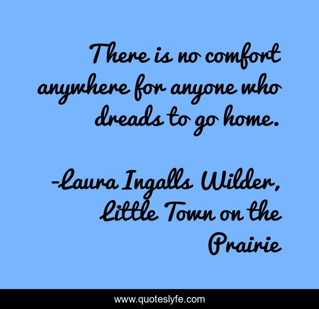 This page presents the quote "There is no comfort anywhere for anyone who dreads to go home.". Author of this quote is Laura Ingalls Wilder, Little Town on the Prairie. This quote is about home, dread,.