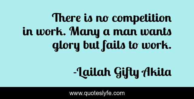 This page presents the quote "There is no competition in work. Many a man wants glory but fails to work.". Author of this quote is Lailah Gifty Akita. This quote is about inspiring, glory, humorous, work, wise-words, job, labour,.