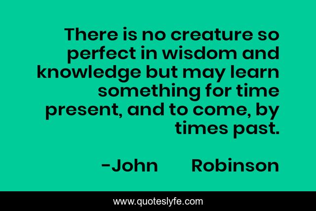 This page presents the quote "There is no creature so perfect in wisdom and knowledge but may learn something for time present, and to come, by times past.". Author of this quote is John Robinson. This quote is about pilgrims, history,.