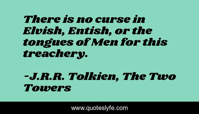 This page presents the quote "There is no curse in Elvish, Entish, or the tongues of Men for this treachery.". Author of this quote is J.R.R. Tolkien, The Two Towers. This quote is about malediction, betrayal,.