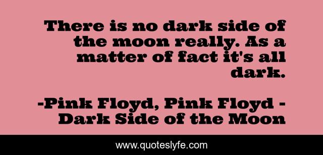 This page presents the quote "There is no dark side of the moon really. As a matter of fact it's all dark.". Author of this quote is Pink Floyd, Pink Floyd - Dark Side of the Moon. This quote is about life, madness, philosophy, pink-floyd, music, rock,.