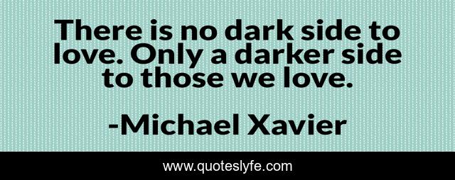 This page presents the quote "There is no dark side to love. Only a darker side to those we love.". Author of this quote is Michael Xavier. This quote is about jrq, love, darkness, affection,.